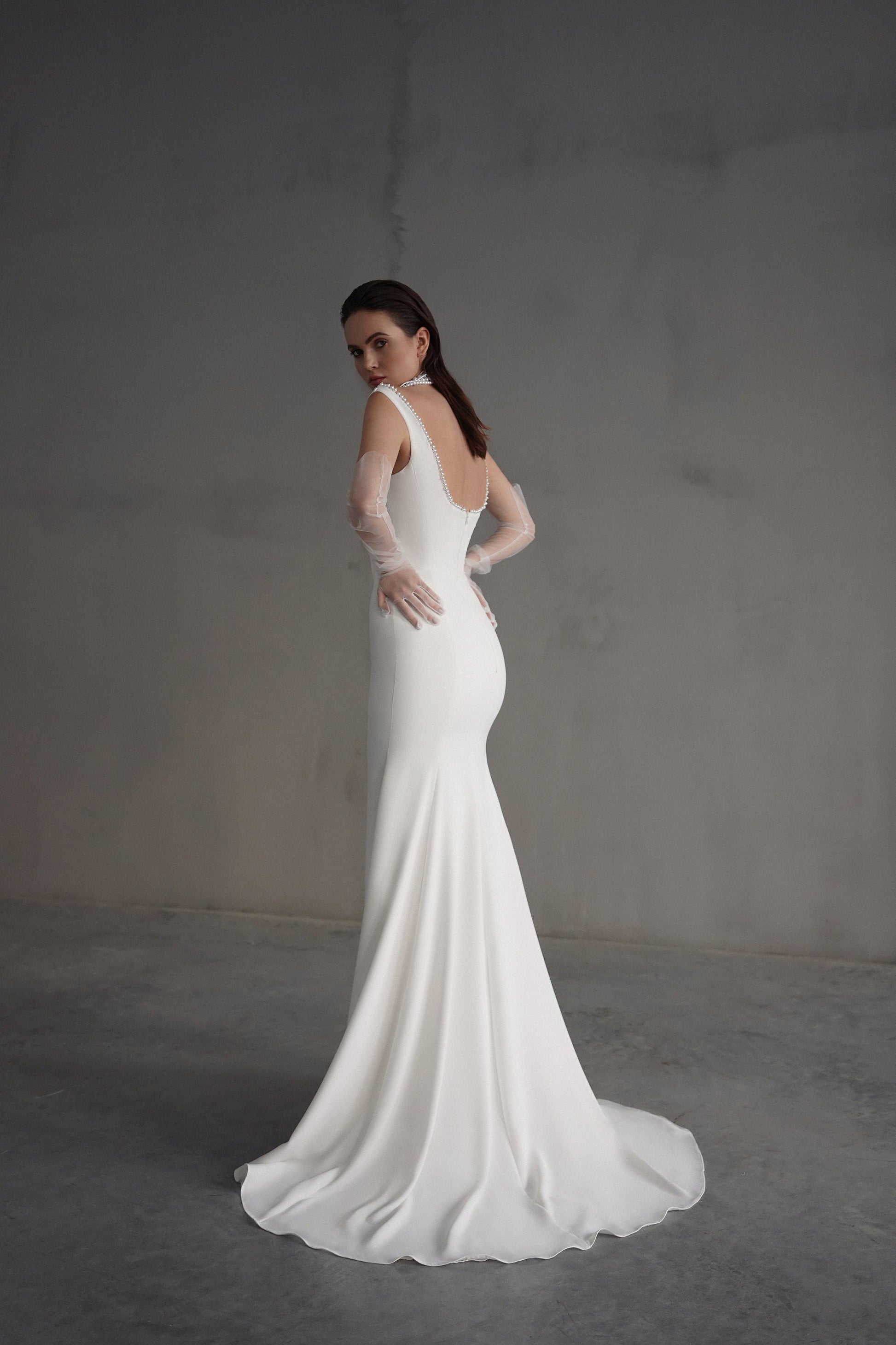 Vintage Elegant Wedding Dress, Open Back Wedding Gown, Modern Wedding Dress, Fitted Wedding Dress, Sexy Wedding Dress, Elopement Prom Dress